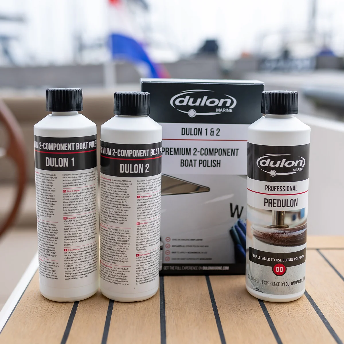 Boat Polish Malta – Dulon 1&2 Premium Surface Protection Dulon 1&2 is the ultimate boat polish Malta solution for professional vessel care. This 2-component system provides deep gloss, long-lasting protection, and a smooth finish on gelcoat and other marine surfaces. Designed for both manual and machine application, Dulon 1&2 ensures your boat polish Malta results are consistent, durable, and visually striking. Why Choose Dulon 1&2 for Boat Polish Malta Using Dulon 1&2 as your boat polish Malta guarantees professional superior results. This system cleans, restores, and protects your boat’s surfaces, removing dull patches, scratches, and persistent stains. When paired with Predulon 00, it ensures perfect pre-treatment by removing dirt, grease, oil, old wax, and silicone residues. For regular maintenance, wash the dulonated surface with Dulon Premium Shampoo 03 to maintain deep gloss and long-lasting shine. How to Pre-Treat and Polish Your Boat Pre-treatment (if required): Use Dulon Hull & Waterline Clean 22 to remove scale and brownish/yellow stains. Apply Predulon 00 to remove surface dirt and grease before polishing. Restore weathered surfaces with Dulon Poly Polish (strong, medium, or fine). Manual Dulonating: Apply Dulon 1 with a damp cloth until a white haze appears. Do not rub off. Apply Dulon 2 similarly and buff with a dry cloth or lamb’s wool pad. Machine Dulonating: Lightly moisten a medium polishing pad, apply Dulon 1 thinly, and polish until white haze appears. Repeat with Dulon 2 using a soft pad and buff with lamb’s wool at high rotation speed. Tips & Tricks for Boat Polish Malta Ideal working temperature: 5–25°C Store frost-free, away from direct sunlight Dulon 1&2 set (500 ml) treats vessels up to 10–15 meters Also suitable for cars, caravans, and campers Regular maintenance using Dulon Premium Shampoo 03 keeps surfaces glossy Related Products Enhance your finishing results with other Dulon Marine products, such as Dulon Marine Boat Polishes. Learn more about best practices for marine surface care on the official Dulon Marine website. Packaging and Availability in Malta 2 x 0.5L – Article No. 6-12005 2 x 5L – Article No. 6-12050 2 x 25L – Article No. 6-12250